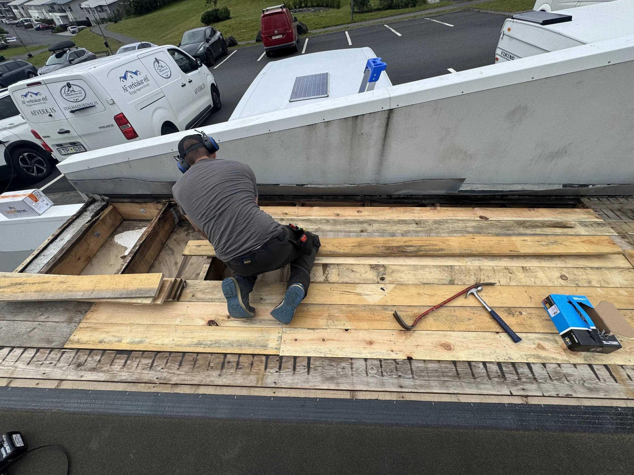 Framkvæmd var endurnýjun á þaki ruslaskýlis við Hörðukór 5, þar sem skipt var um alls 50 m² af þakklæðningu. Um var að ræða einhallandi þak, sem var klætt með nýju bárustáli og þakpappa, með sérstakri áherslu á endingargæði og veðurþol.